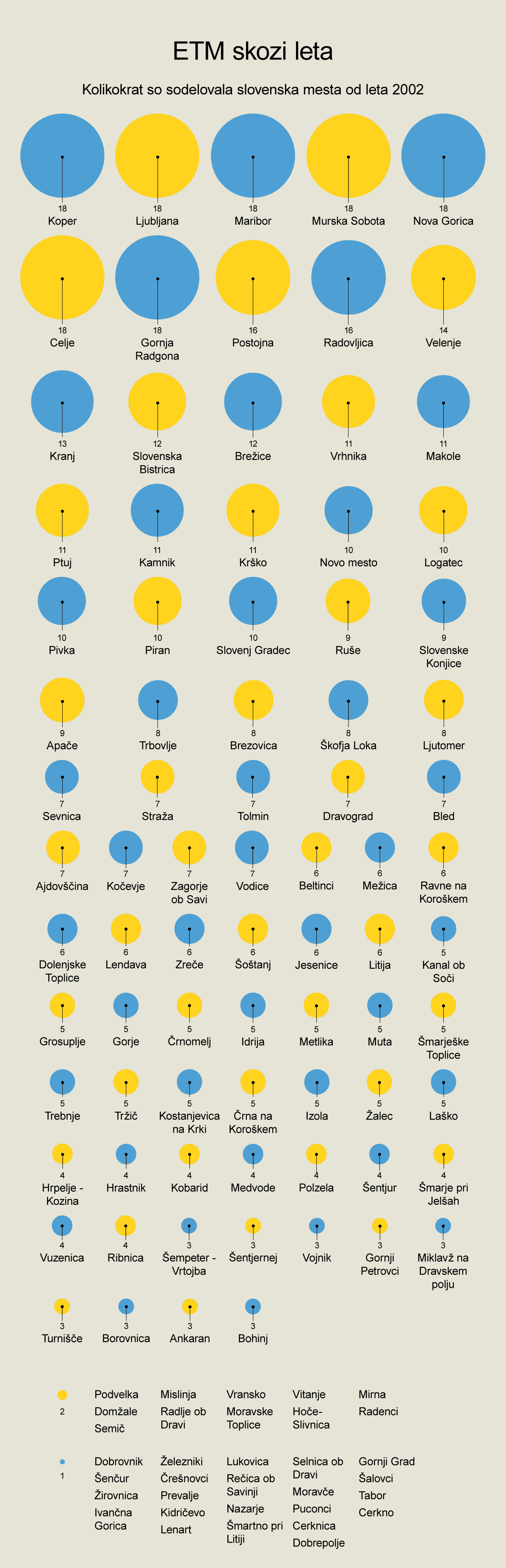 Kolikokrat so sodelovala slovenska mesta od leta 2002